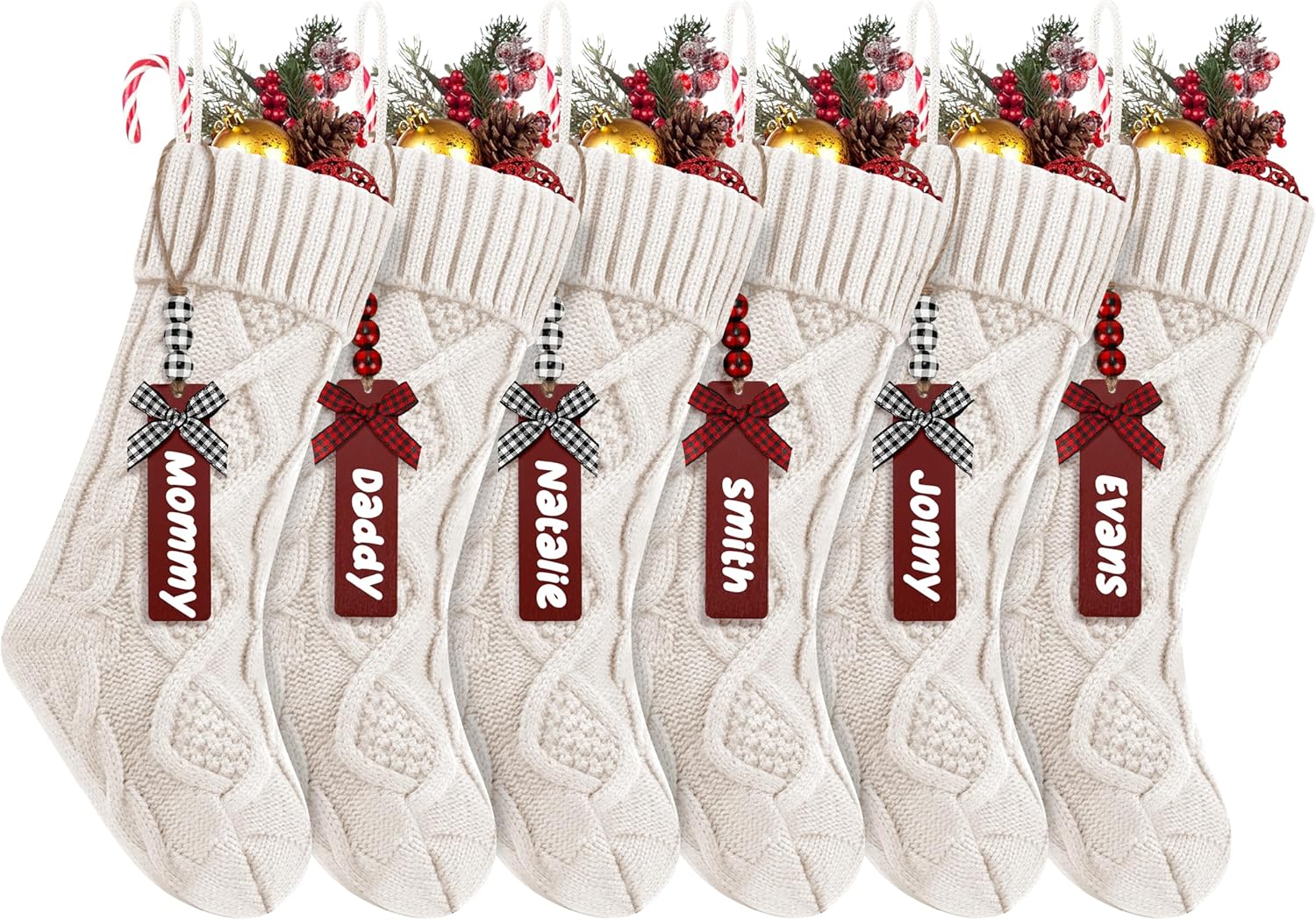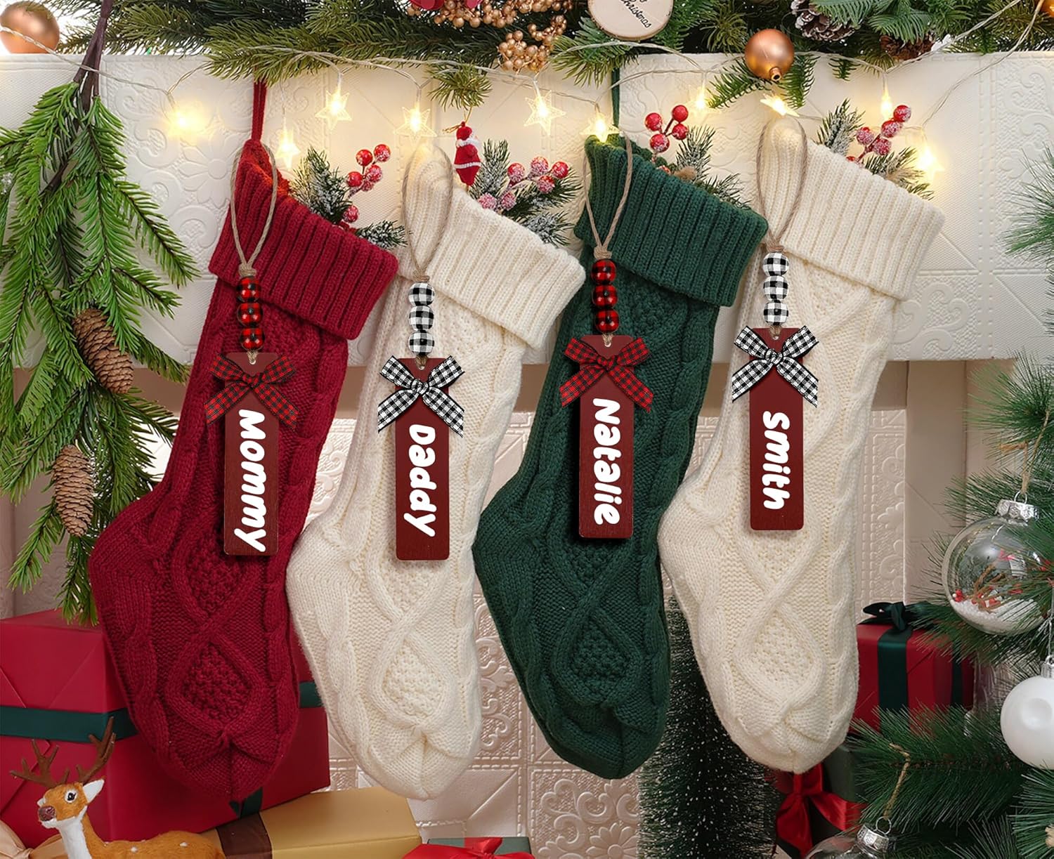 Specifications:Material: Soft acrylic fabricSize: 18”*5”Pack Includes: 6P/4P/3P/2PColor: White&Red&GreenFeature:The personalized Christmas stockings are crafted from soft durable fabric and finished with a wooden name tag for a wonderful keepsake. Each stocking comes with a wooden tag, you can write your loved one’s name or your own name as per your choice. Our stockings can easy hanging by the fireplace, staircase, or wherever you celebrate Christmas. This is the ideal for family members, friends, or as a memorable gift for loved ones during the holiday season. Note:Due to variations in lighting and screen settings, the colors of the actual product may differ slightly from those shown in the photos. Please allow for a 1-2cm difference in measurements due to manual handling.