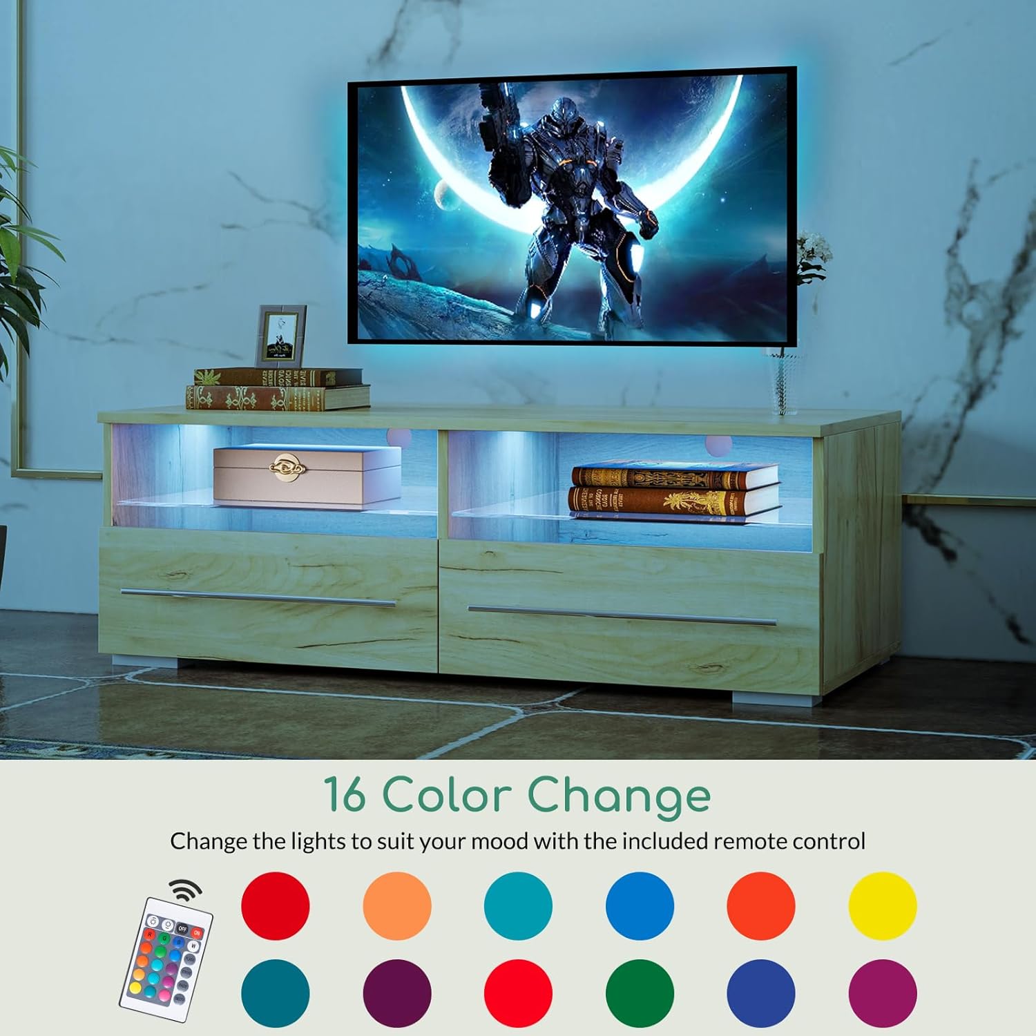 | Item Type Name | Wood TV Stand with LED Lights, 39 Inch Modern Entertainment Center for Gaming, Living Room, Bedroom, TV Console with Storage Cabinet for TV Up to 43 Inch |