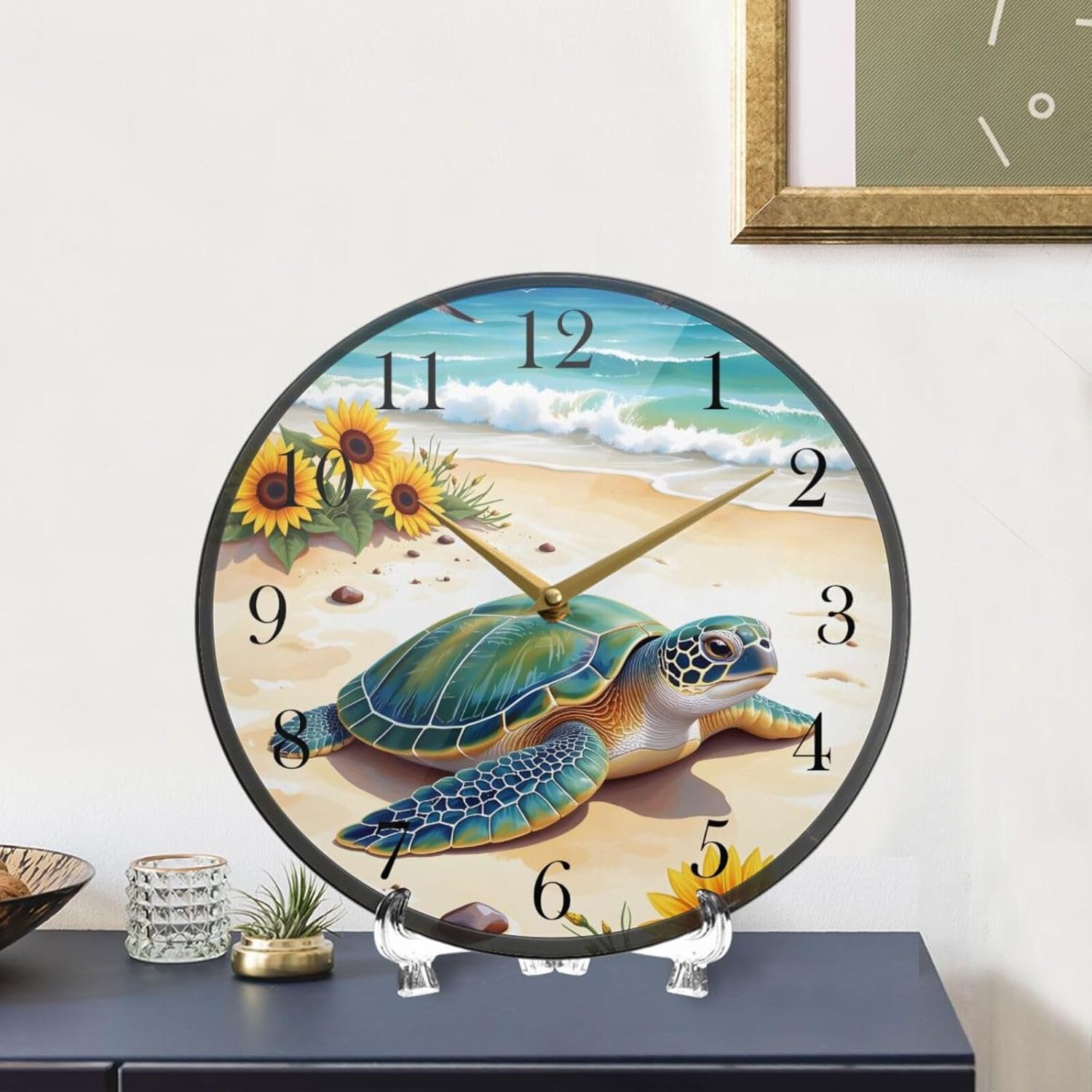 Round Wall Clock Size Round Wall Clock Size: 9.5 x 9.5 Inches,Thickness: 5mm Round Wall Clock Size: 11.9 x 11.9 Inches,Thickness: 5mm Wall Clock Material Acrylic board, silicone edging strip Acrylic panels have a glass texture, but are lighter than glass. Features Gold clock pointers,simple and elegant Hanging holes on the back,easy hanging Comes with a support which allow the clock place on the table Wall Decoration With a delicate and beautiful pattern, the wall clock can help you decorate the wall of your room and add a stylish and pleasing feel to your place. The round wall clock suitable for living room,kitchen,dining room,study room,guest room,meeting room,office,dorm,etc. Please Note Powered by 1 AA battery ( Not included ). Package Include a round clock, and a support which allow the clock place on the table,battery Not included. When calibrating the time, first move all clock hands to the twelve o'clock position, ensure that the second hand, minute hand, and hour hand remain parallel, and then insert the battery to start adjusting the time from back. If the clock pointer is inaccurate or stuck,it needs to be disassembled and reinstalled. Do not use too much force during installation to avoid damaging the clock hands.