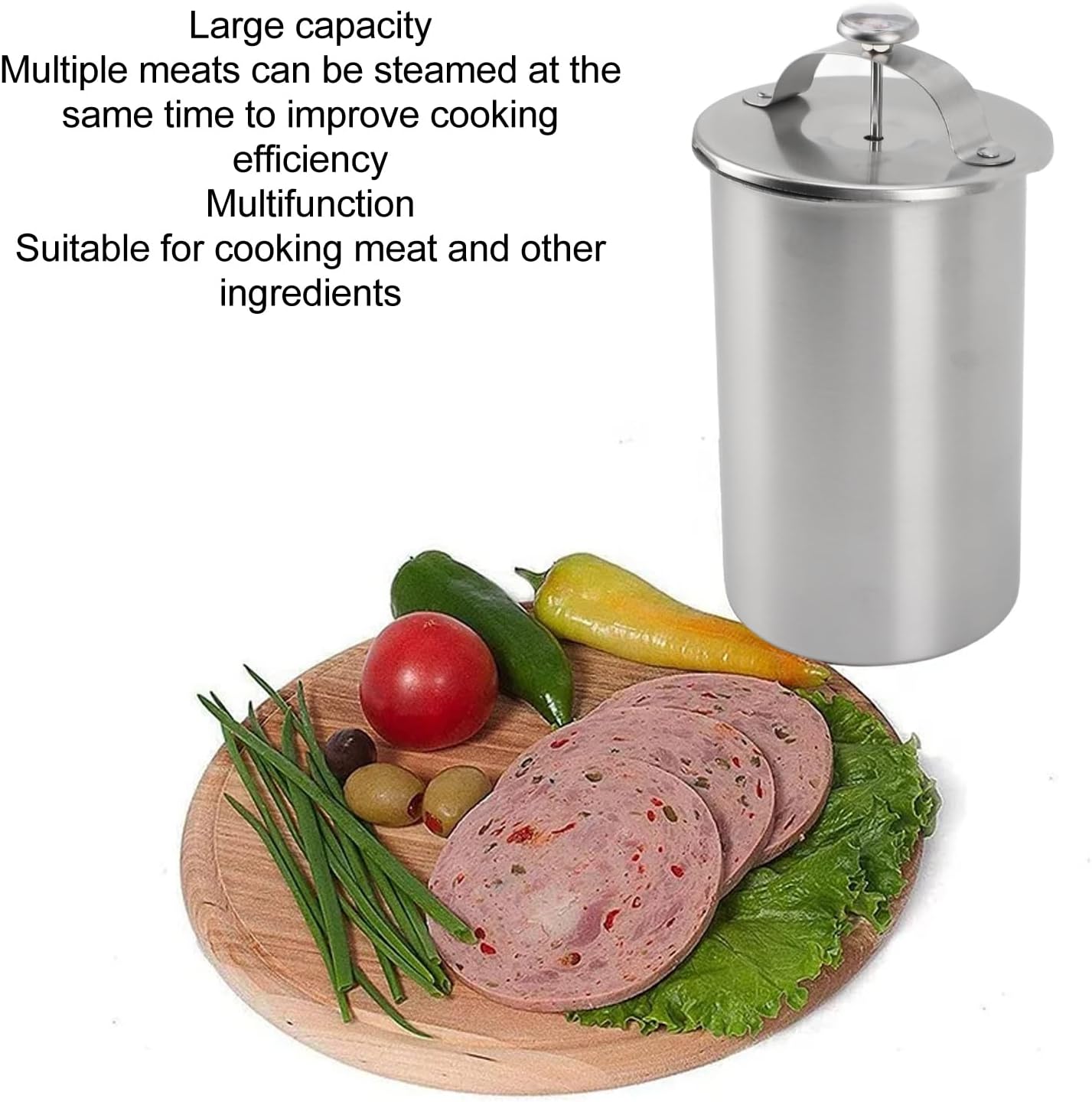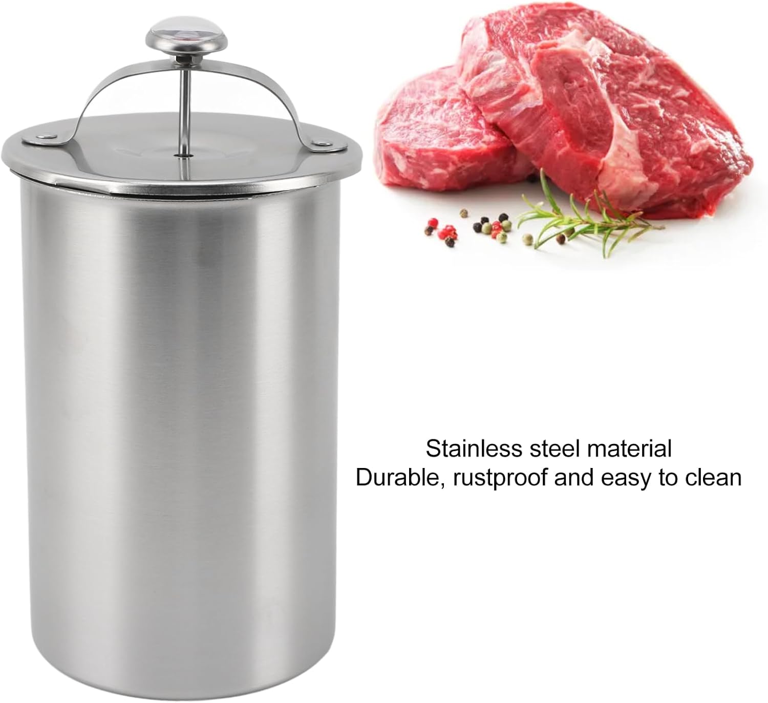 Item Type: Meat Press MakerMaterial: Stainless SteelWeight: Approx. 548.00g / 19.33ozPackage List:1 x Meat Press Maker (3 accessories)1 x Thermometer