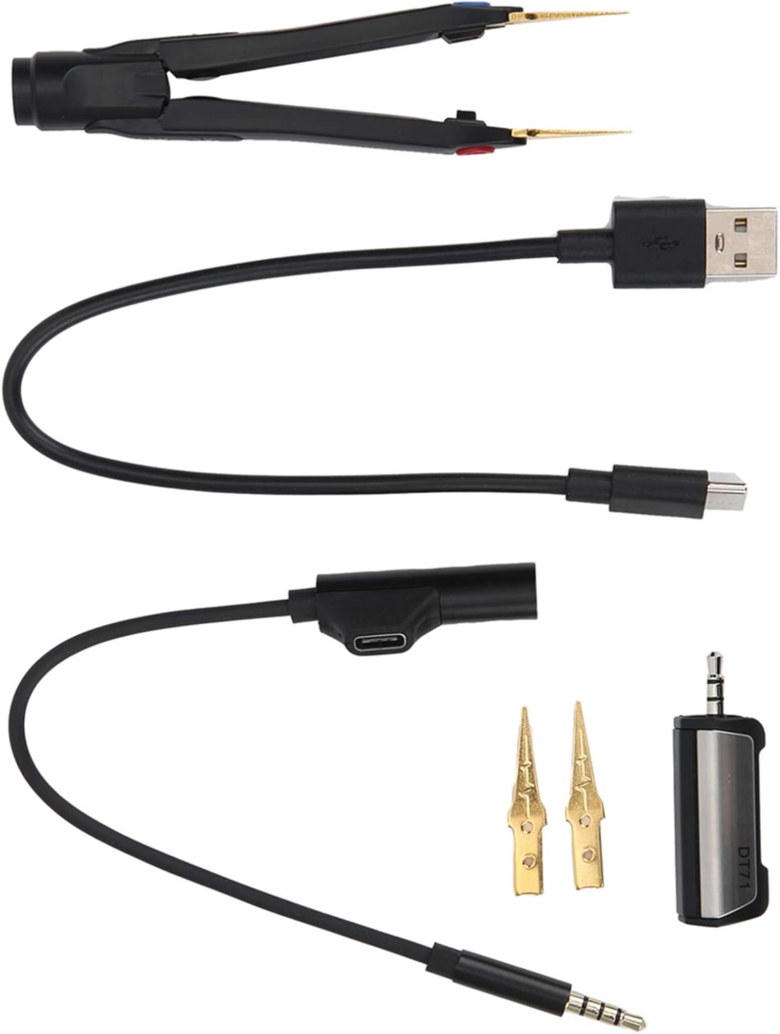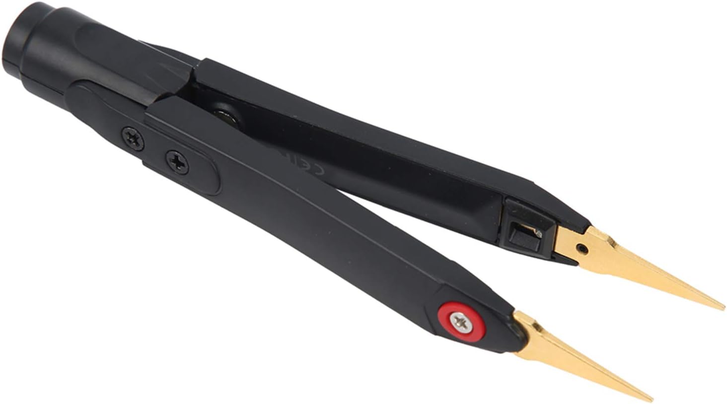 1. The shape of the tweezers with three‑section split structure can be separated into the controller, the measuring arm and the tweezers head, which can be flexibly replaced and combined. It is compact and mini and is convenient to carry. 2. The thickened gold‑plated tweezers head is suitable for various usage scenarios, beautiful and , and the measurement is more accurate and . It can automatically measure , capacitance, inductance, voltage, frequency, diode and other devices. 3. The built-in miniature generator can output a variety of waveform (sine , noise , pulse , custom waveform), providing a solution for complex electronic system debugging and maintenance and discrete smd component classification detection. 4. Organic light emitting diode screen, 360‑degree adjustable window, to meet different viewing angles; controller uses concealed touch buttons, light touch shift, simple intelligent attitude judgment, automatically distinguish left and right hand and switch the screen display direction. 5. The measuring arm has magnetic elasticity, patented design, strong magnetism, and ergonomics; The measuring arm has a built-in high-power double lithium battery, which is balanced by the force, can be charged separately, and standby for a long time. Specification: Item Type: Smart Mini Digital Tweezers Material: ABS + Metal Weight: Approx. 141g/5oz Power Interface: 3.5MM Interface Charging Time: 2 Hours Continuous Working Time: 10 Hours Display: 90x16 Organic Light Emitting Diode Battery Type: Lithium Battery Battery Model: modle Battery Capacity: 50mAh Switch Button: Concealed Touch Button How to Use: First check whether the product has power. If there is power, please fully insert the controller into the 3.5mm audio female socket of the measuring arm. After the display shows normally, it will enter the user