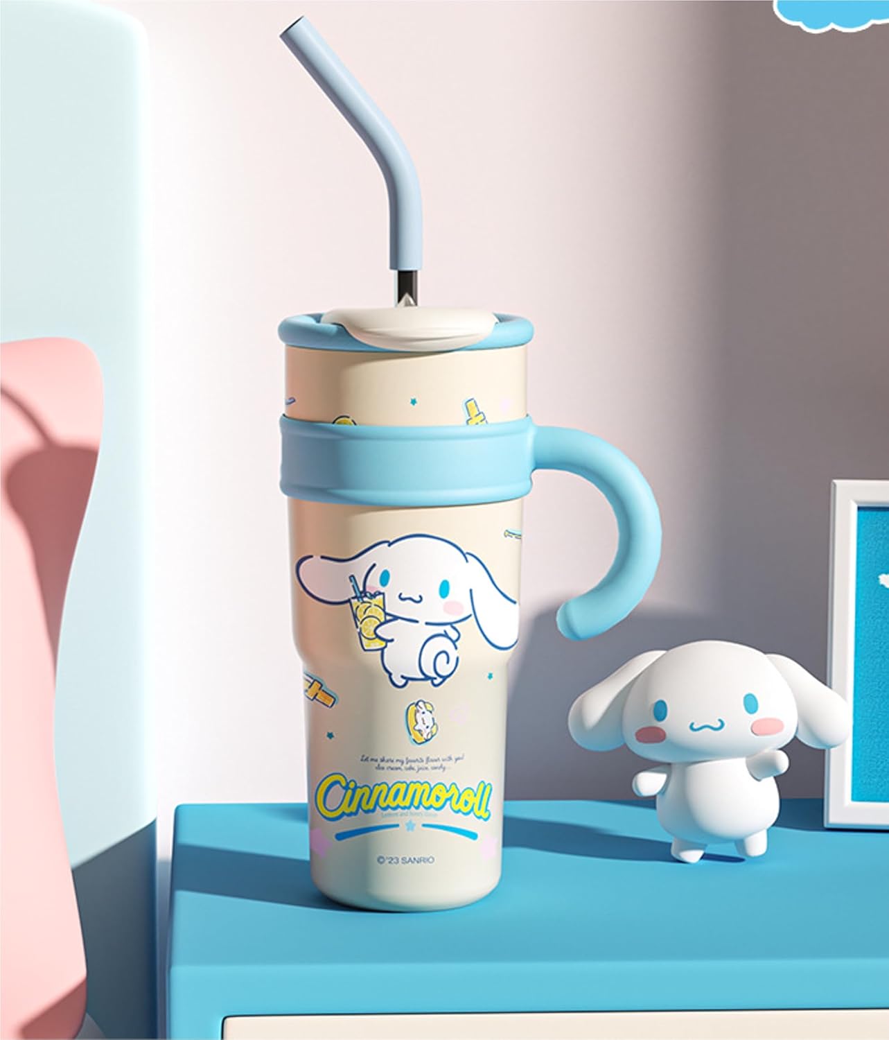 Cinnamoroll with Lemon Stainless Steel Insulated Tumbler with Lid, Straw & Handle - XL Size
