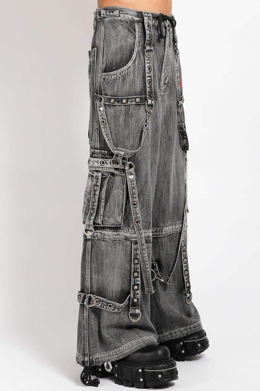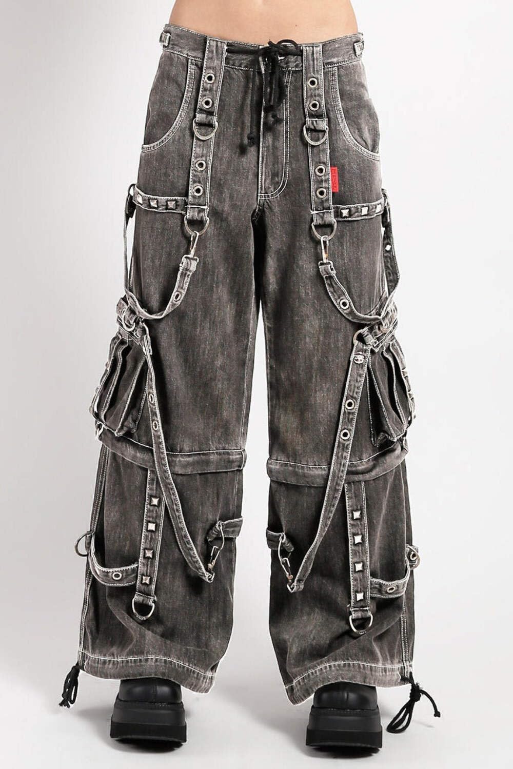 Mist into the shadows... Tripp NYC Baggy Pants. Greyed, Black-Wash Denim. Detachable Straps. Deep Pockets. Adjustable Ankles. Drawstring Waist. Zip Fly & Button Close. Converts to Shorts. Unisex. 100% Cotton. Men's size Medium, women's size XS. Waist Size [inches]: XXS 25-28, XS 28-30, S 30-32, M 32-34, L 34-36, XL 36-40, XXL 40-44, 3XL 44-48.