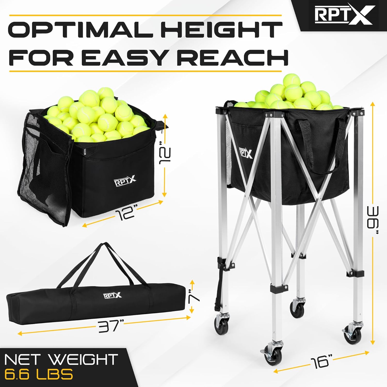 The RPTX Tennis Ball & Pickleball Cart with wheels is the ultimate solution for players and coaches looking to maximize their training time and keep all their gear organized. Designed to hold up to 150 tennis balls or 120 pickleball balls, this cart makes it easy to store and transport your balls and gear, so you can focus on your game rather than constantly picking up balls. Whether you're using it as a tennis trainer or for pickleball drills, this folding cart provides the perfect storage solution for all your tennis and pickleball accessories. Made from durable 600D oxford nylon and a rustproof aluminum frame, the cart is built to withstand outdoor use season after season. Its tear-resistant fabric and sturdy frame ensure reliability, making it an investment in long-lasting tennis accessories. The RPTX cart features 360° rotating casters, making it easy to move from one location to another. Two of the wheels are lockable to provide added security and prevent shifting during use, whether you’re practicing solo or coaching a team. The cart also includes detachable side pockets for storing personal items like phones and keys, along with mesh pockets for rackets and water bottles—making it a versatile tool for any athlete or coach. The folding cart design allows for quick and tool-free setup, and when you’re done, it folds compactly for easy storage. Plus, it comes with a convenient carry bag for added portability. Built to handle any weather, the waterproof and weather-resistant design ensures your training sessions are uninterrupted, regardless of the conditions. Not just for tennis and pickleball, this cart is also ideal for ball storage for baseballs, softballs, or other sporting equipment. Whether you’re a coach or a player, the RPTX Tennis & Pickleball Cart with wheels will streamline your training sessions and make organizing your tennis balls and pickleball accessories easier than ever. Order yours today and experience the benefits of a high-quality, multi-functional cart that’s perfect for tennis and pickleball enthusiasts alike.