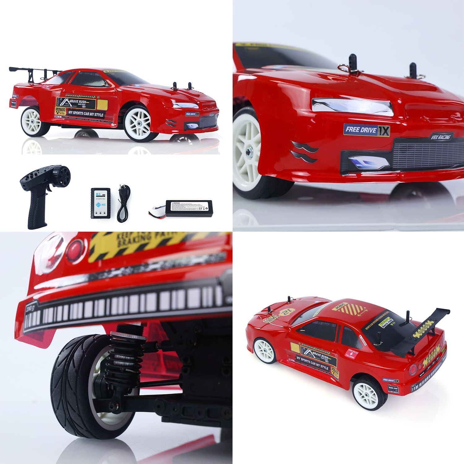 #60-70KM/H High Speed VRX RH1026 1/10 Radio Controlled Electric Off Road Car 4WD RC Model Vehicle 3650 Brushless Motor 45A ESC #Specification: Manufacturer: VRX Item Condition: New, Painted and Assembled Scale: 1/10 Material: Plastic, Metal Color: Red Vehicle Size: 364*190*130MM/14.3*7.5*5.1Inches ESC: 45A Brushless ESC Motor: 3650 Brushless Motor Servo: 3KG Servo Speed: 60-70KM/H Vehicle Battery: 7.4V 2S Li-Po (Included) Wheelbase:261MM/10.3Inches Wheel Diameter: 65MM/2.6Inches Wheel Width: 26MM/1.0Inches ID: VRX-RH1026-BL-RTR-R #The Package Includes: 1/10 RC Off Road Car Model ESC Motor Servo Remote Controller and Receiver Charger Vehicle Battery Instruction Manual #The Package Does Not Include: Light System Sound System Battery of Remote Controller #If you have any questions or are not sure whether it is the correct item you want, pls feel free to contact me before purchasing.